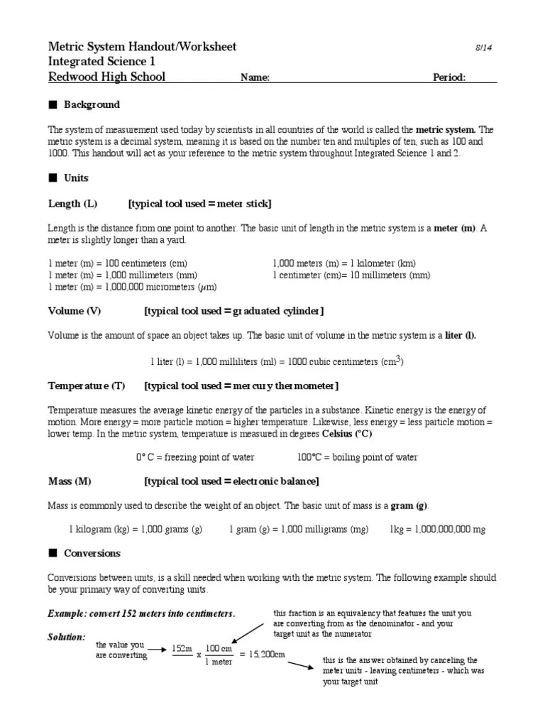 Metric System Worksheet Answer Key / Pin On Middle School Science /
